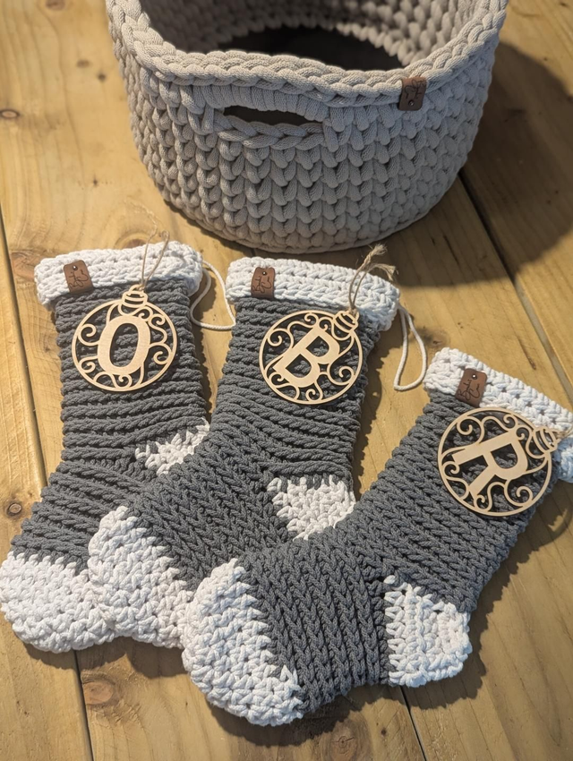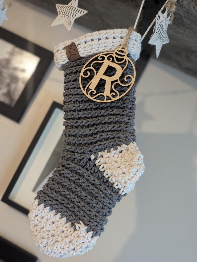 - A PDF pattern with written instructions to guide you through making your own eco friendly Christmas stocking, made from 100% recycled cotton cord in any shade you desire
